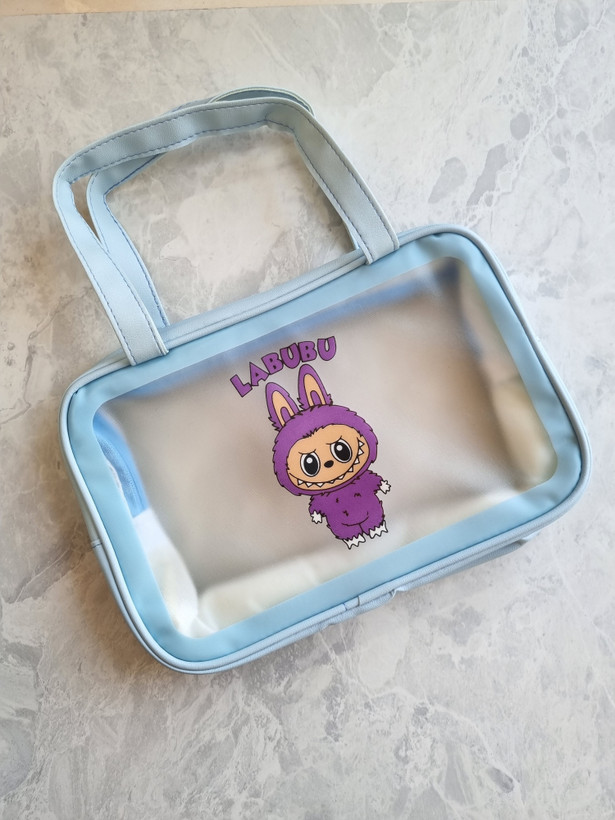 واش بگ سایز بزرگ چرمی طرح لبوبو رنگ آبی – کیف لوازم آرایش و بهداشتی