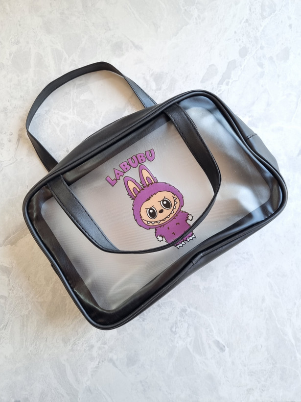 واش بگ سایز بزرگ چرمی طرح لبوبو رنگ مشکی – کیف لوازم آرایش و بهداشتی