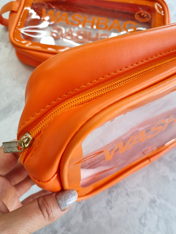 واش بگ سایز متوسط چرمی طرح واش بگ رنگ نارنجی – کیف لوازم آرایش و بهداشتی