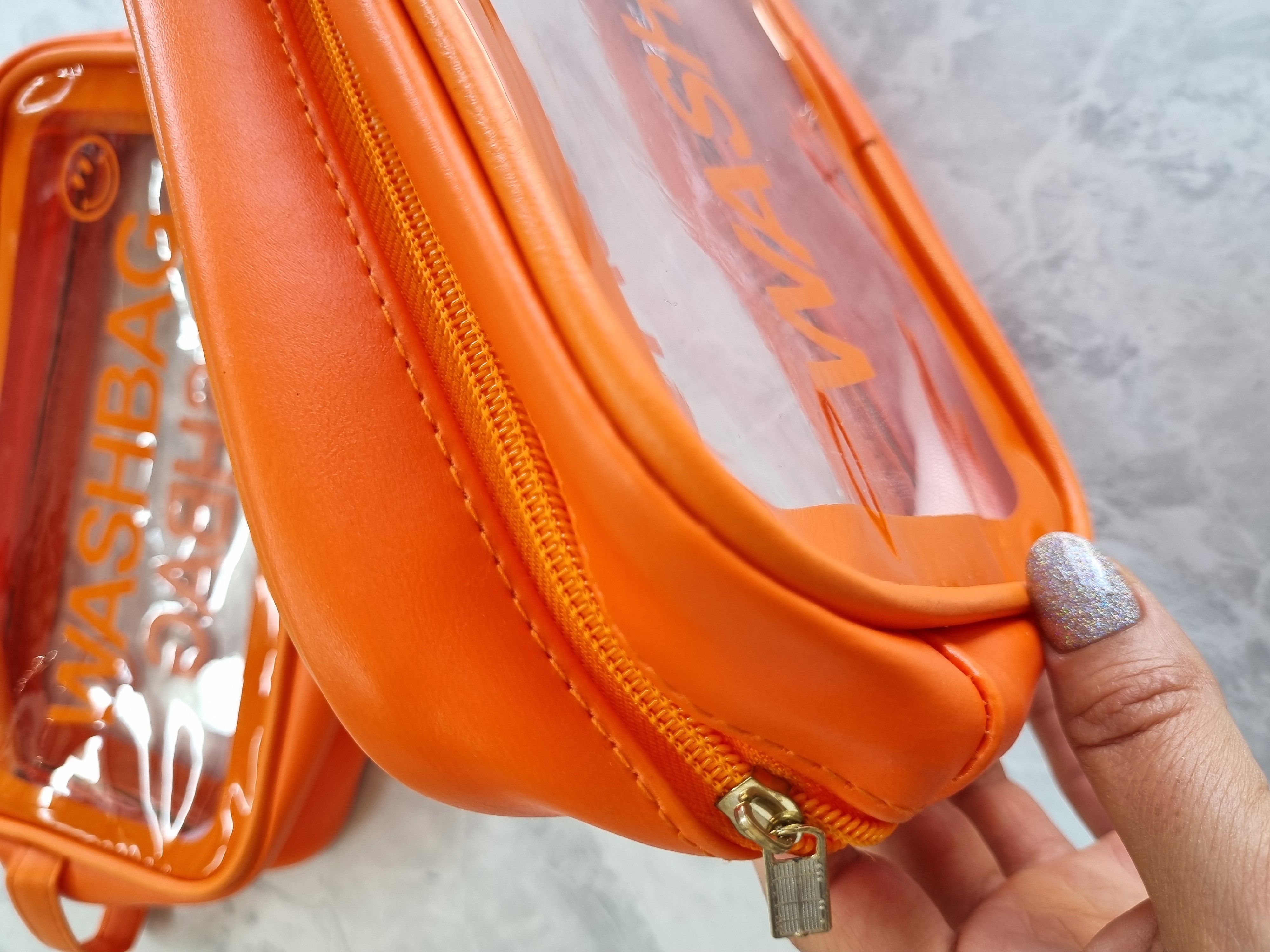 واش بگ سایز متوسط چرمی طرح واش بگ رنگ نارنجی – کیف لوازم آرایش و بهداشتی
