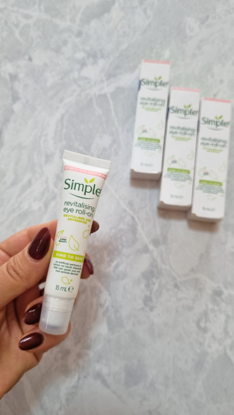 رولآن چشم Simple Kind to Eyes Revitalising Eye Roll‑On فرمولی بسیار سبک و تسکیندهنده دارد که با استفاده از ویال فلزی، حس خنکی تجربهای آرامبخش به پوست اطراف چشم میدهد – حتی برای پوستهای حساس مناسب است .